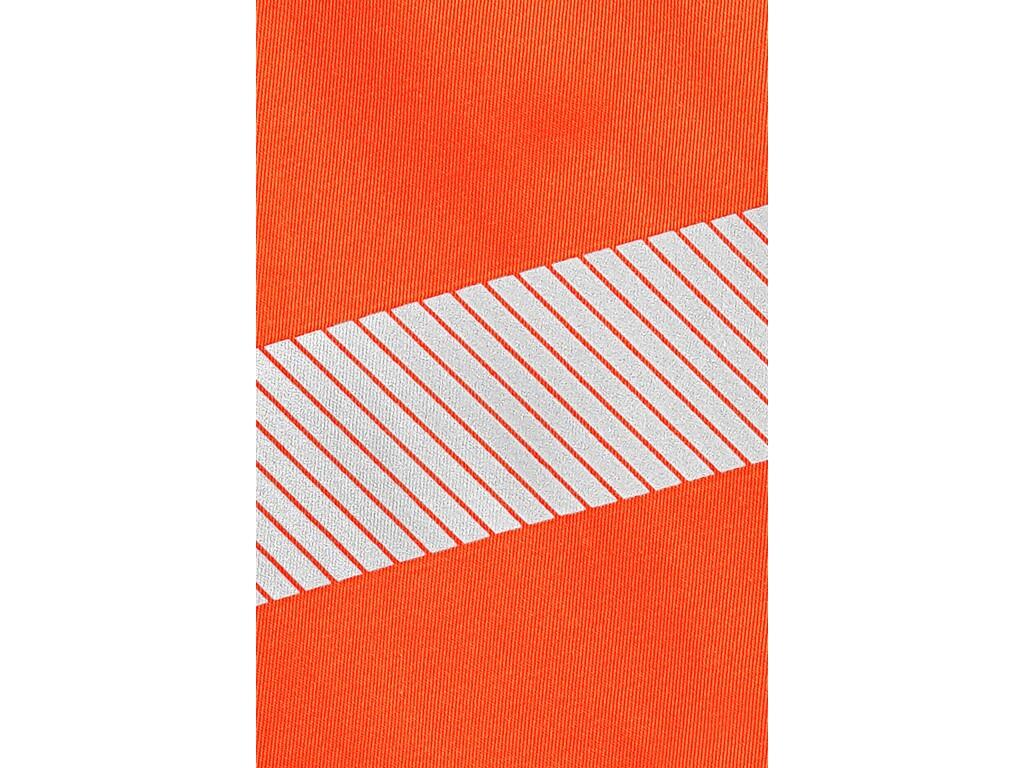 Pánské výstražné kalhoty s náprsenkou se segmentovanými reflexními pásky (šířka 7 cm). Pevná keprová vazba zajišťuje pevnost a odolnost materiálu. Šle jsou elastické díky zadní gumě a jejich délku lze snadno upravit pomocí plastové přezky. Kalhoty se