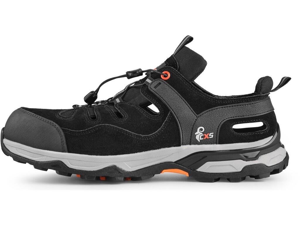 Bezpečnostní sandál s ocelovou špicí, reflexní doplňky. Materiál: svršek z 1,4 - 1,6 mm perforované hovězí broušené kůže kombinované s PU doplňky, podšívka z prodyšné oděru odolné textilie. Podešev: kombinace materiálu EVA, TPUa gumy, olejivzdorná, a .