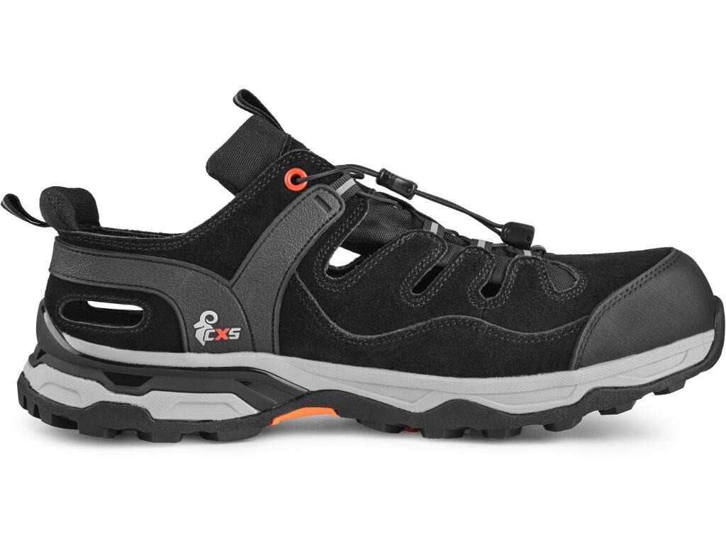 Bezpečnostní sandál s ocelovou špicí, reflexní doplňky. Materiál: svršek z 1,4 - 1,6 mm perforované hovězí broušené kůže kombinované s PU doplňky, podšívka z prodyšné oděru odolné textilie. Podešev: kombinace materiálu EVA, TPUa gumy, olejivzdorná, a .