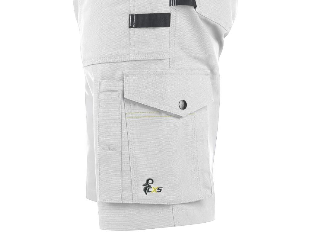 Pánské montérkové kraťasy, strečová tkanina umožňující volný pohyb, pas s poutky na opasek, přední kapsy s kapsou na zip, multifunkční kapsy na obou stranách, dvě zadní kapsy - jedna s klopou, reflexní doplňky. Doporučené použití: letní pracovní oděv .