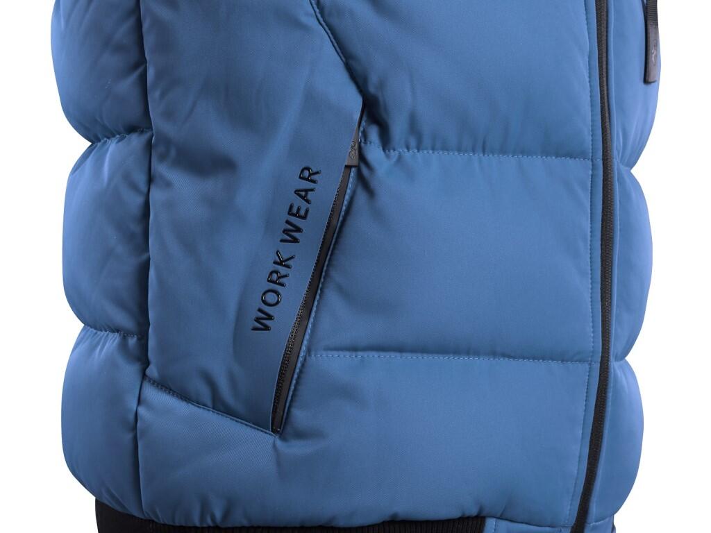 Pánská zimní vesta do práce i na volný čas. Díky modernímu prošívanému designu s hřejivým zateplením poskytuje komfort i styl. Vesta je vybavena odepínací kapucí z pleteniny, bočními kapsami na zip s reflexními doplňky a vnitřní kapsou na zip. Pas je .