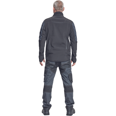 Materiál:Svrchní materiál: 00 % polyester, 280 g/m2, mechanical-stretchVnitřní podšívka: 00 % polyester, taffetaVnitřní izolace: 00 % polyesterPopis:pánská celopropínací softshellová bunda se stojacím límcem, odolná proti větru i dešti; 2 postraní kapsy na zip, náprsní kapsa na zip; reflexní prvky v barevném odstínu; elastická obruba rukávů a pasu; v rukávech otvor na palec.Normy:EN ISO 688 Vlastnosti:Specifikace: voděodolné oděvy, prodyšné oděvyÚdržba:Prát na 40 °C, jemný prací procesNebělitSušení v bubnové sušičce zakázánoŽehlení zakázánoChemické čištění zakázáno