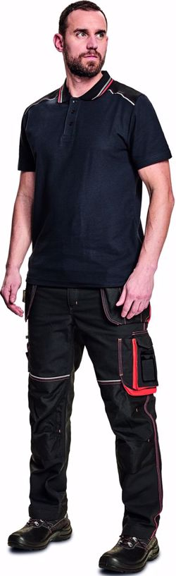 pánská polokošile s krátkým rukávem ze směsi bavlny a polyesteru v úpletu pique - sedlo v kontrastní černé barvě lemované reflexní paspulkou; propínací léga na knoflíky; dekorativní prošití v hi-vis barvě; kontrastní proužek v límci